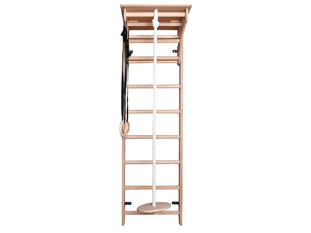 Multifunctional, wall mounted balance with variable ceiling height (can also be used as a desk), fitness rings and a swing. It can be used not only by children but also by adults as the maximum weight of the user is 120 kg and the height of the tow bar can be modified. This allows the user to adjust the height. It will become your child’s favorite playground and will offer the opportunity for a regular and effective training for adults. Made of solid beech wood, oiled by hand and according to European safety standards PN-EN 12346: 2001, PN-EN 913: 2008 for gym equipment. Includes assembly kits and installation materials. It is not possible to install it on a plasterboard wall and on a partition wall thinner than 10 cm.