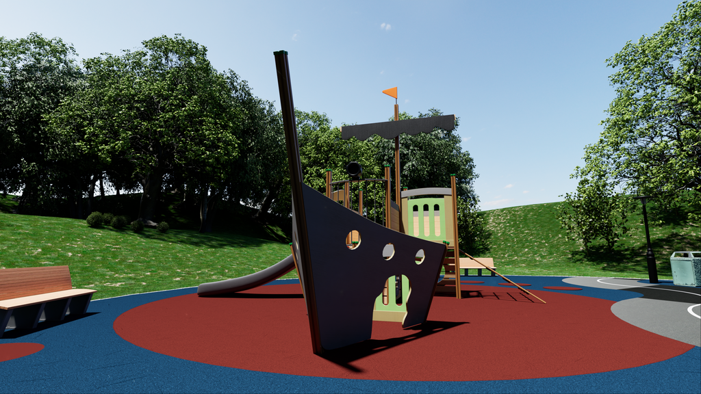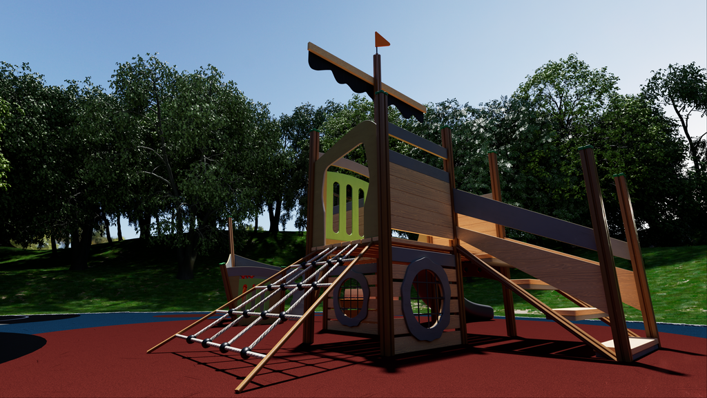 Whether sailing around the world or on the hunt for the missingpirate treasure – the „Berlin“ offers the children a comprehensiveand exciting play experience with climbing net, slide, telescope andsteering wheel.