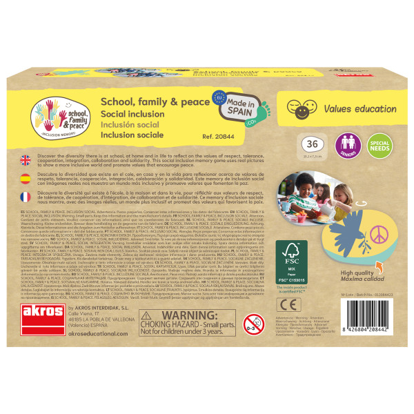 Discover the diversity there is at school, at home and in life to reflect on the values of respect, tolerance, cooperation, integration, collaboration and solidarity. This social inclusion memory game uses real pictures to show a more inclusive world and promote values that encourage peace.